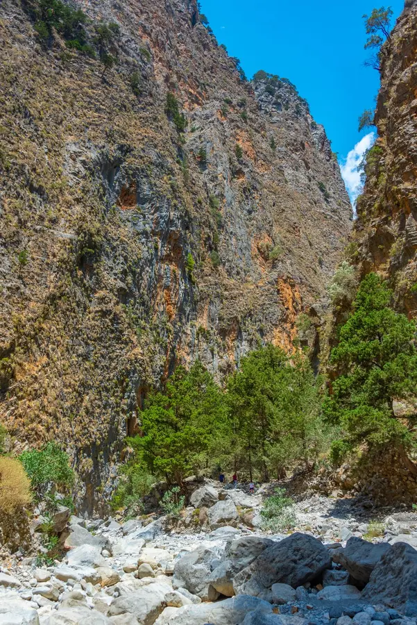 - Entry point: Omalos Plateau; exit at Agia Roumeli on the Libyan Sea.